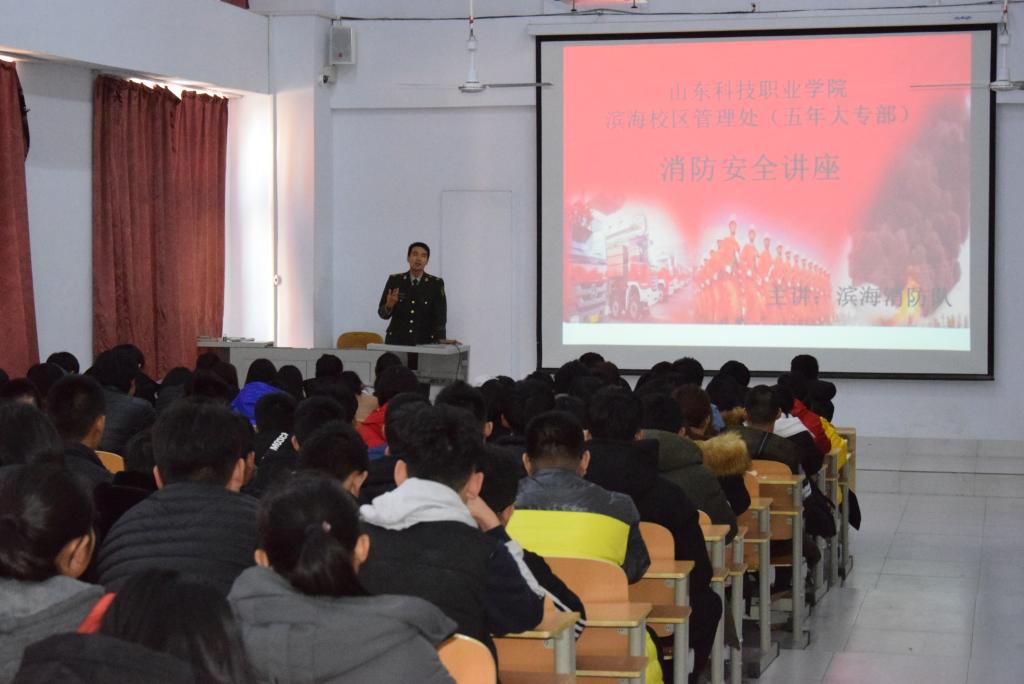 为进一步加强滨海校区安全工作,营造安全、稳定、和谐的校园环境,增强校区师生消防安全意识,了解消防安全知识,提高紧急逃生能力,2017年12月8日下午,滨海校区特邀请滨海区消防大队高俊泓警官,到校做关于“校园消防安全”的教育讲座。滨海校区全体学生干部、宿舍舍长及教师代表共150余人参与学习。